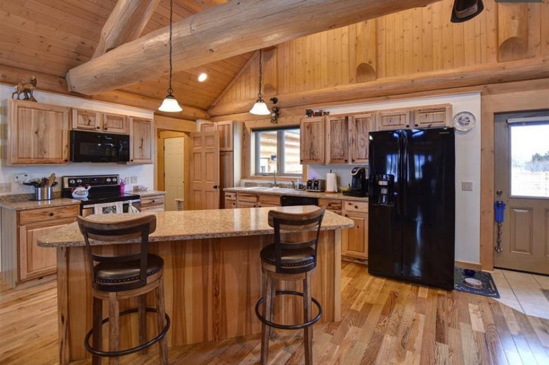 Custom kitchen in a handcrafted log home. Cowboy Log Homes