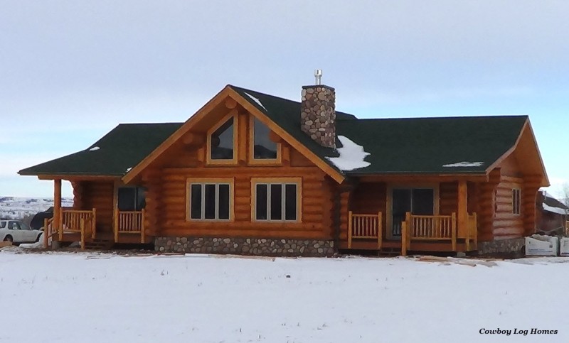 Handcrafted log home, Bear Creek Plan, built near the Bridger Mountains of Bozeman, Montana. Cowboy Log Homes