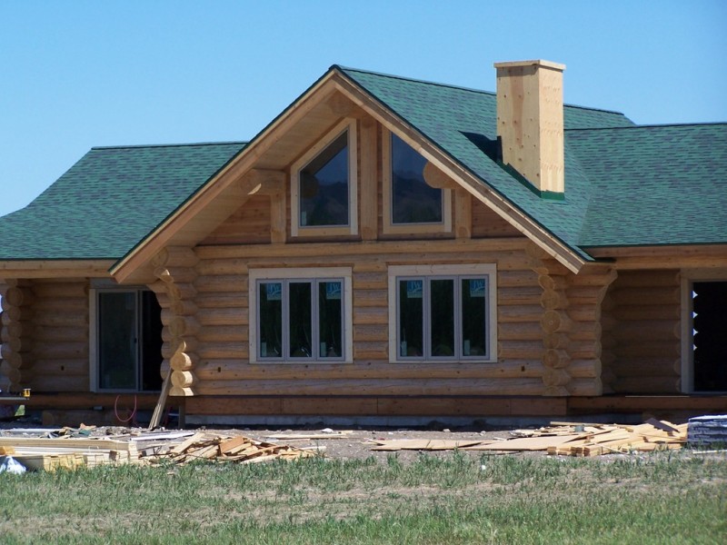 Side view of Douglas Fir Log Home, Bear Creek Log Home Plan. Cowboy Log Homes