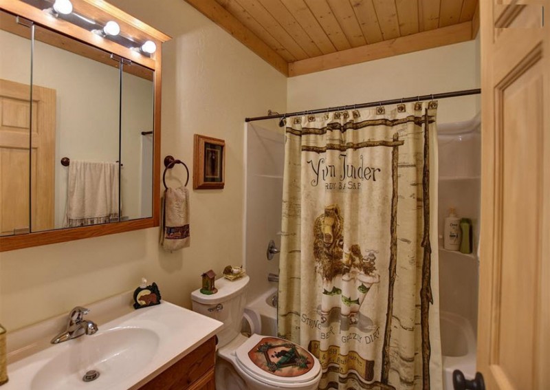 Second Bathroom off of hallway in Gold Creek log home plan. Cowboy Log Homes