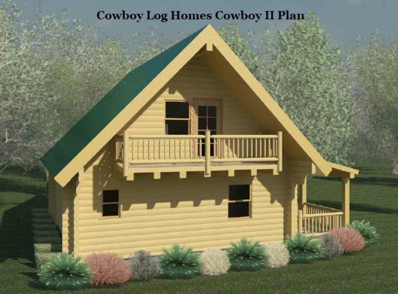 This is the view side of one of our 3-D renderings for the Cowboy II log home design. Cowboy Log Homes