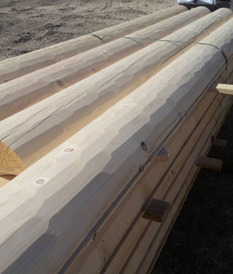 Large diameter Swedish Cope logs with full lengths and a hand peeled finish are sometimes used in place of a more expensive handcrafted log home option.