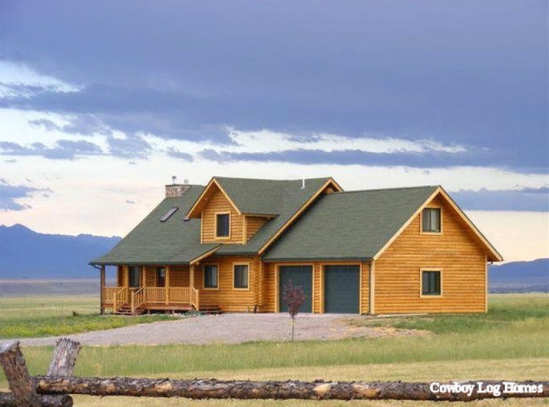 Log homes in Montana. This is an 8 inch Swedish Cope log home with an attached 2 car garage. Cowboy Log Homes